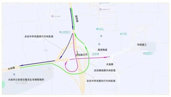 此次导改位于中华路立交,振连路入市方向通过中华路立交桥去往中华东路东行以及西行方向的匝道开通,中华东路出市方向通过中华路立交桥去往振连路方向的匝道开通。