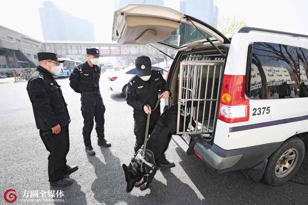 周钰健(中)与辅警开车带着“阿尤”与“哈哈”,去往执行专项查缉勤务任务地区。“在公共交通中开展警犬巡逻是国际化警务的标志,当时,北京地铁正处在高速发展时期,点多、线长、面广,被列为高风险点位。警犬巡逻可以起到震慑违法犯罪、维持站内秩序的作用,还可以辅助查缉危险物品、涉暴警情处置等。” 北京市公安局公共交通安全保卫总队警犬工作大队二中队中队长赵云龙向《方圆》记者介绍说。