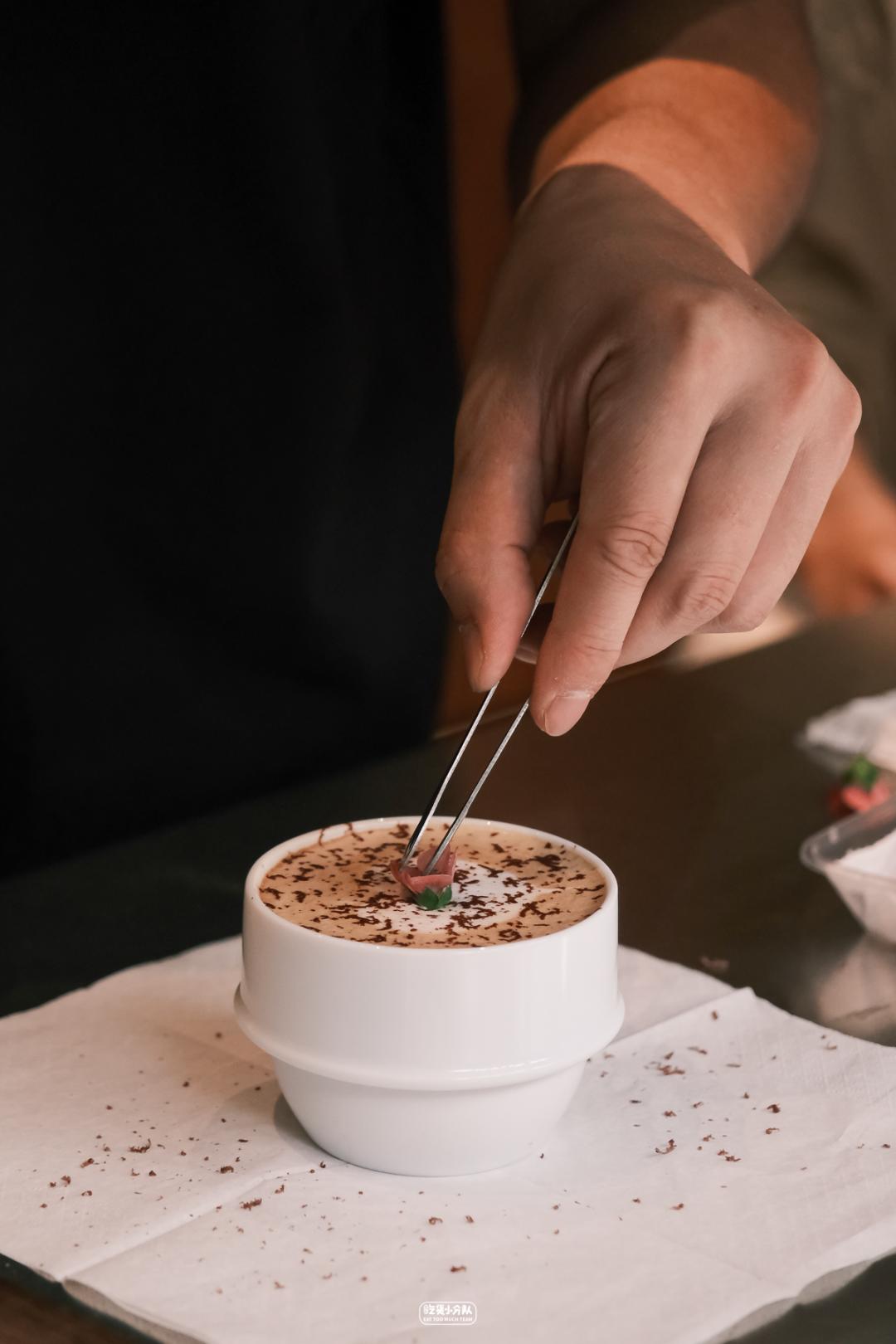 这杯茶特调,将传统的“吃茶”概念融贯其中。能十分直接地从碾碎的茶末中,感受到武夷岩茶的扎实底蕴和绵长气息。