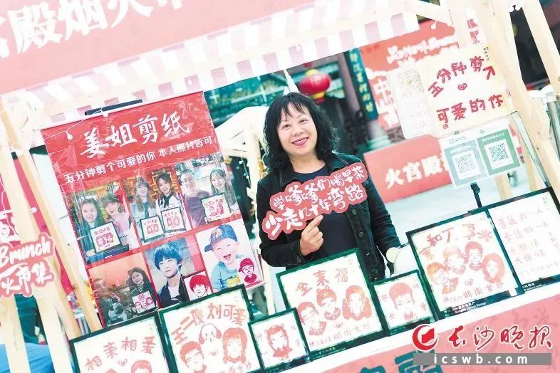 剪纸的姜姐,一大早把摊位摆到了火宫殿。长沙晚报全媒体记者 王斌 摄长沙的夜经济五光十色,长沙的早茶文化同样丰富多彩。独具魅力的天心区坡子街街区,从早到晚24小时都有精彩的消费场景。4月15日至4月16日,火宫殿举办了国潮早茶市集,开启了一场美食与传统文化的近距离对话,吸引了许多市民和游客驻足打卡。仅仅两个上午就售出约4000份早餐,总计接待游人食客逾万人。