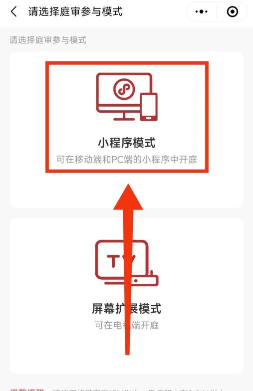 单击小程序模式即可在手机端参加在线庭审如果案件处于诉前程序,没有获取案号参考以下步骤: