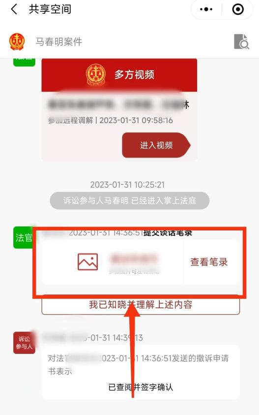 进入共享空间,点击法官发布的文件对文件进行查阅签字