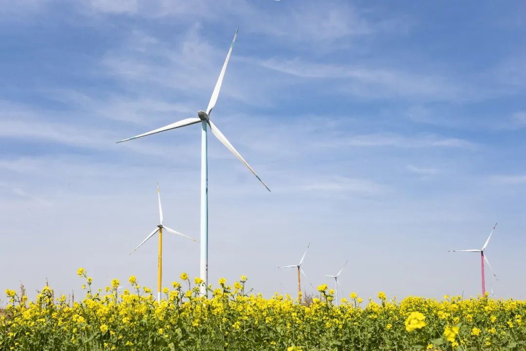 最美人间四月天,一片片金黄色的油菜花海与彩绘风机相映成趣,这是中国华能河南清洁能源分公司汤阴风电场的春日限定美好。