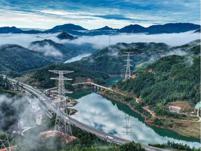 在风清、水美、岸绿的春光里,中国电气装备承建的福建北电南送特高压交流输变电线路工程800千伏福厦线特高压角钢塔项目,正源源不断地输送着绿色能源。