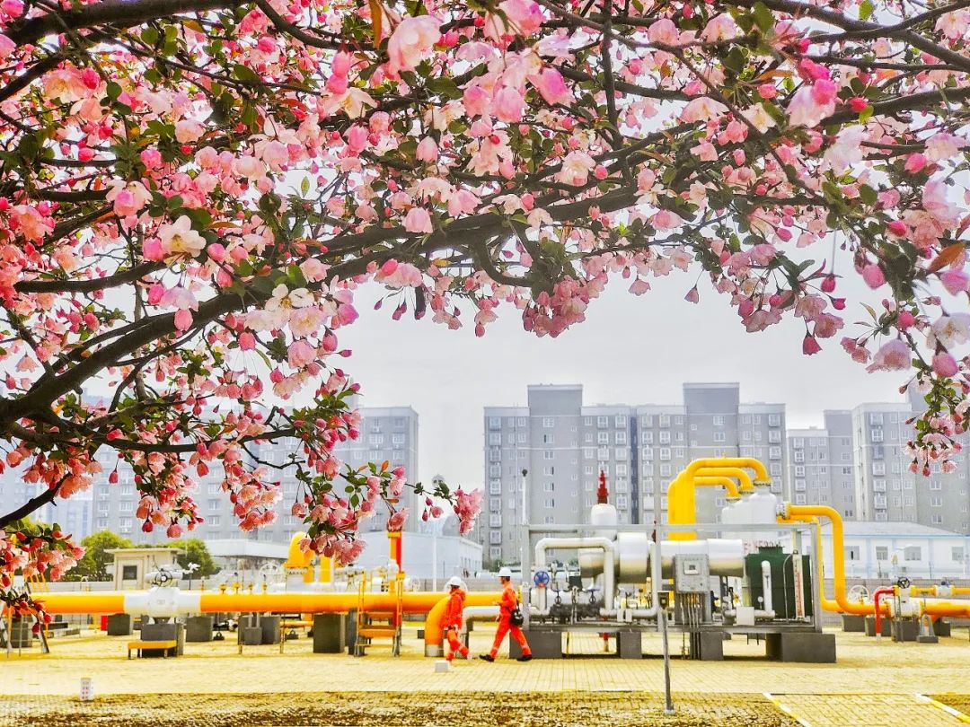 垂丝海棠和冬樱花争相开放,春色如许催人奋进。国家管网集团西气东输邳州压气站员工干劲十足,细致开展设备设施巡检维护,用心守护着管网安全平稳运行,将天然气源源不断输送至长三角地区。