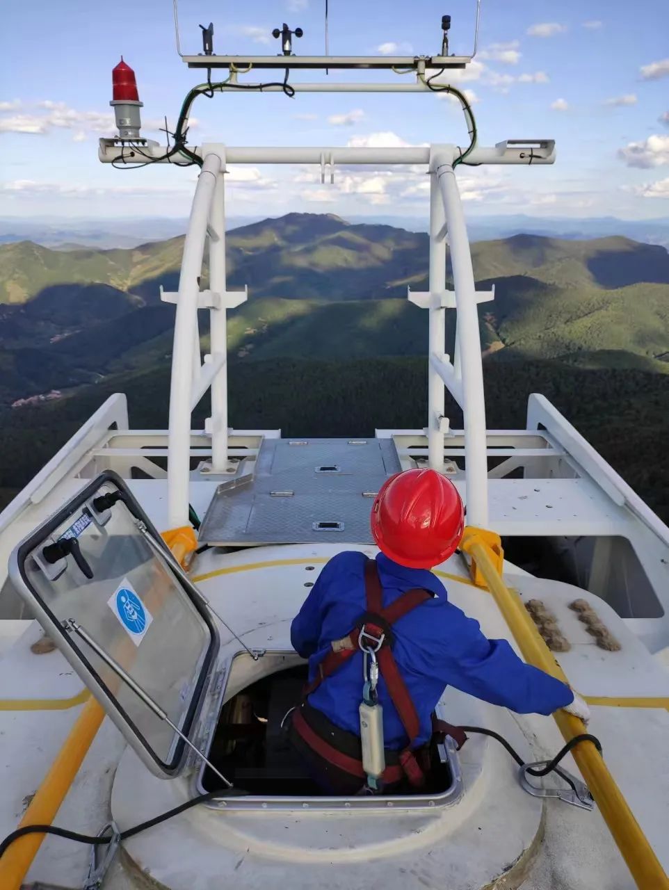 春山如笑,奋斗当时。在中国华能新能源公司河北分公司吉上风电场,风机检修员正在进行风电机组定期巡视检查工作。