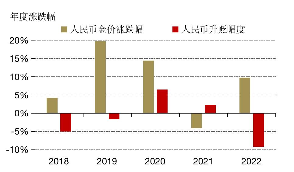 *基于2017年12月31日至2022年12月31日的日度数据,根据上海黄金交易所的Au9999合约收盘价和美元兑人民币汇率计算得出。