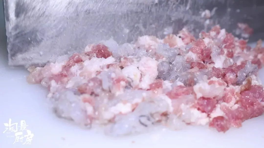 虾仁先碾碎再剁,可保持弹嫩的口感!