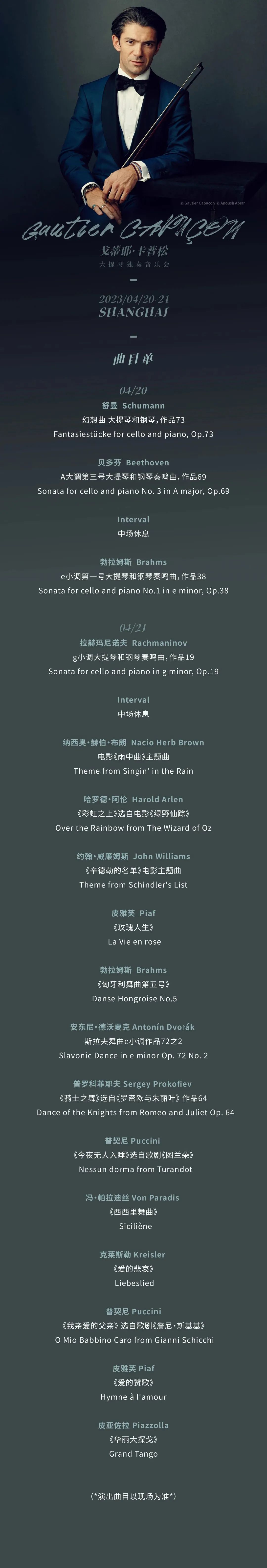 前两个“第一”,胖胖鸟其实已经在文章开头提前剧透给了大家——戈蒂耶·卡普松是三年来首位登陆沪上舞台的海外知名艺术家,这次音乐会也是他第一次在上海举行个人独奏音乐会。