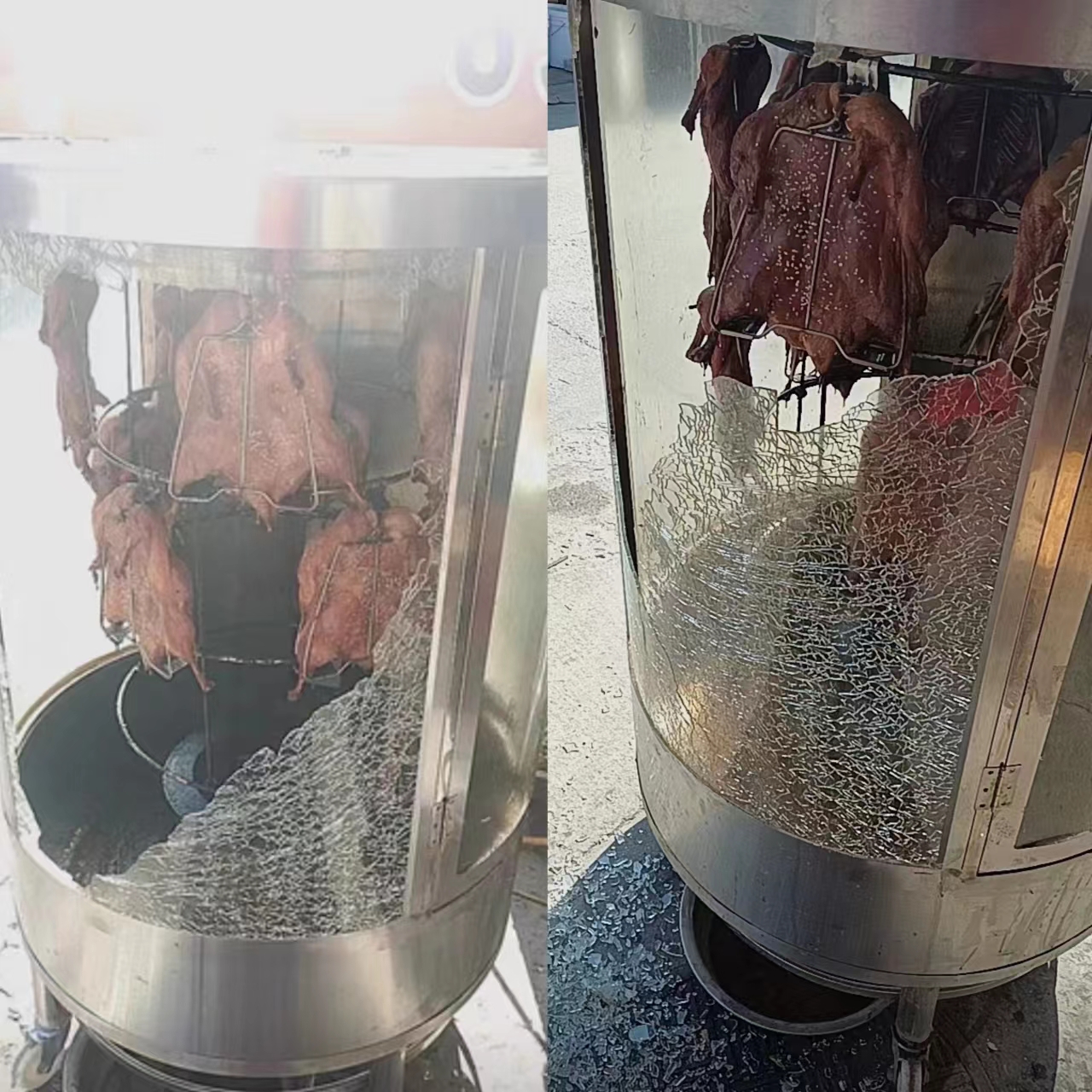 徐先生的烤鸭炉两次爆炸情况,外侧玻璃全部碎裂。本文图均为受访者供图