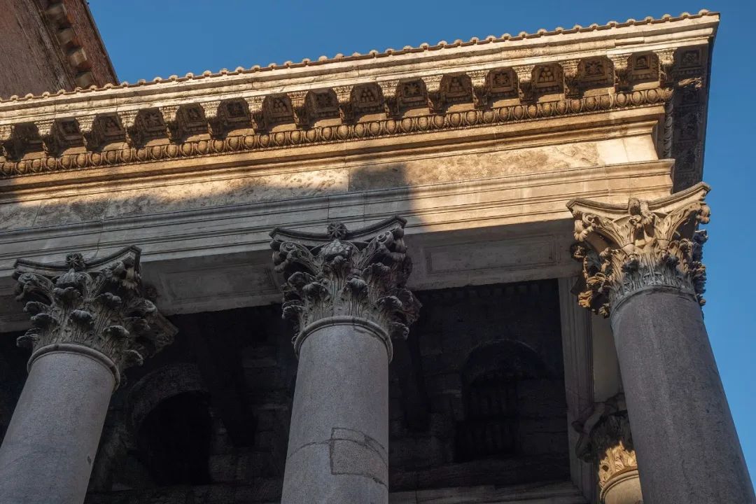 ©Nicholas Hartmann, CC BY-SA 4.0, via Wikimedia Commons不朽的门廊(portico)共有16根科林斯式立柱,每根高11.8米,都由单块埃及花岗岩雕凿而成,支撑着一堵三角形的山墙。立柱后面是两扇重达20吨的青铜门(16世纪按最初的门廊修复),门后便是中央的圆形大厅。