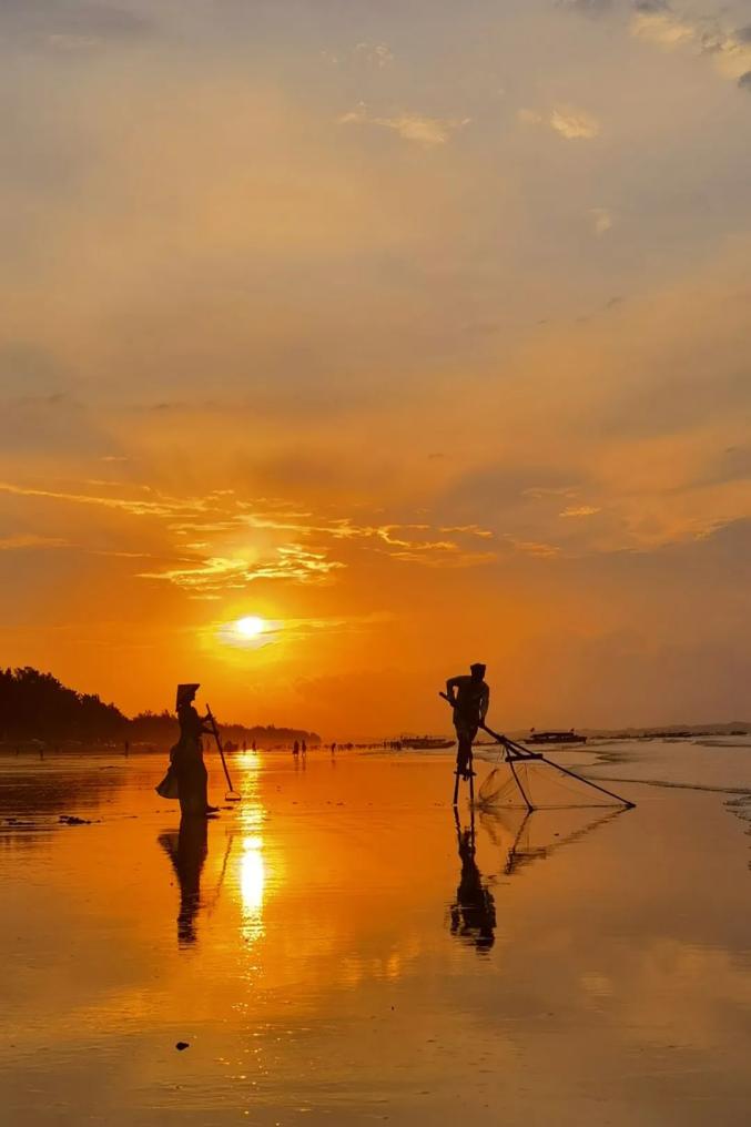 ▲万尾金滩高跷捕鱼 青萝/摄影钦州