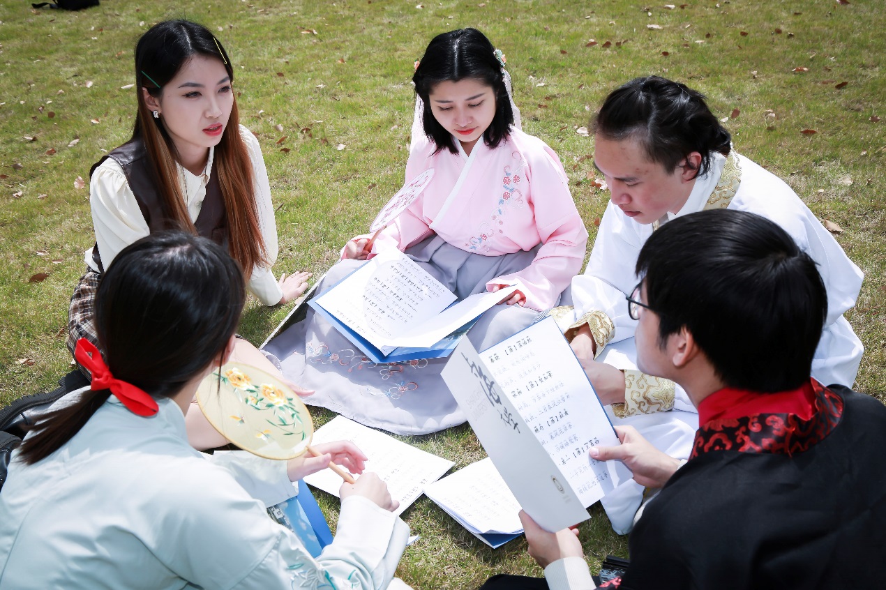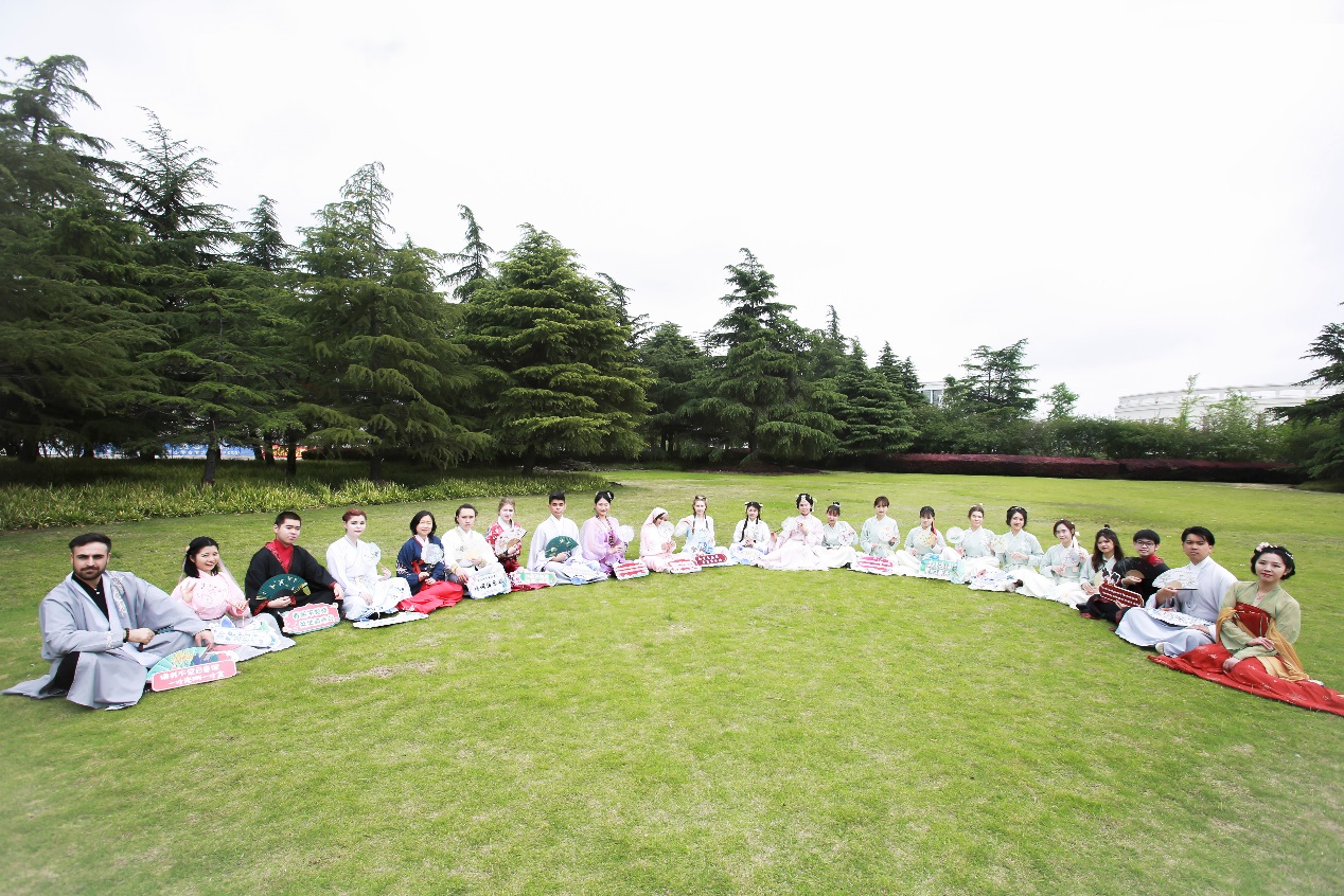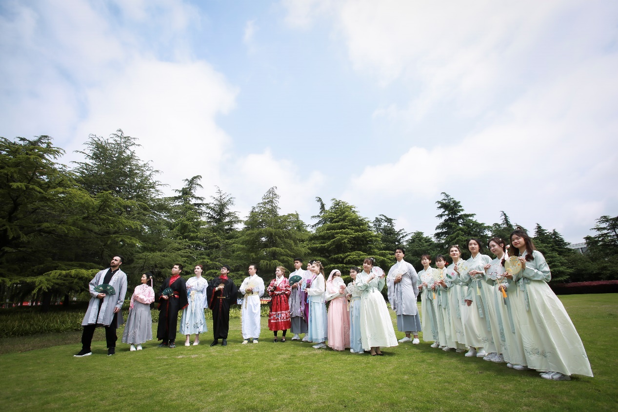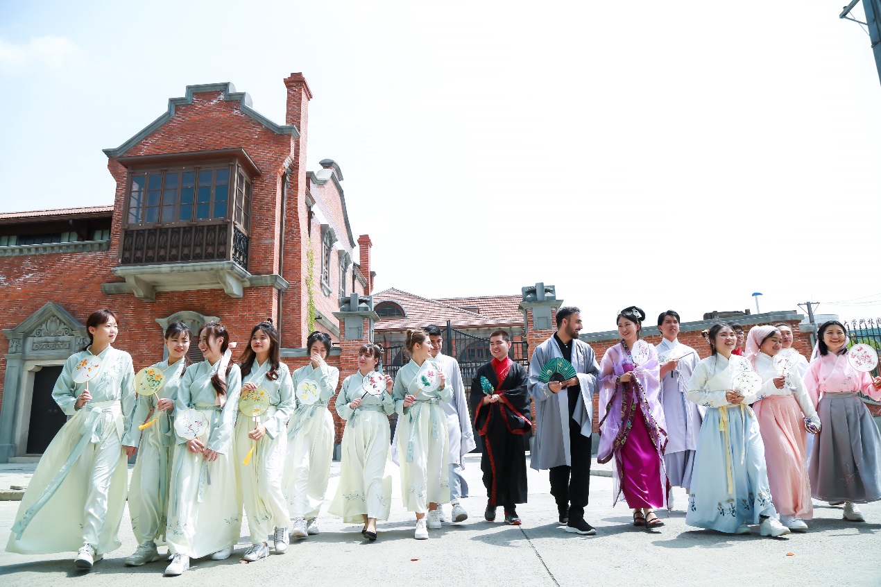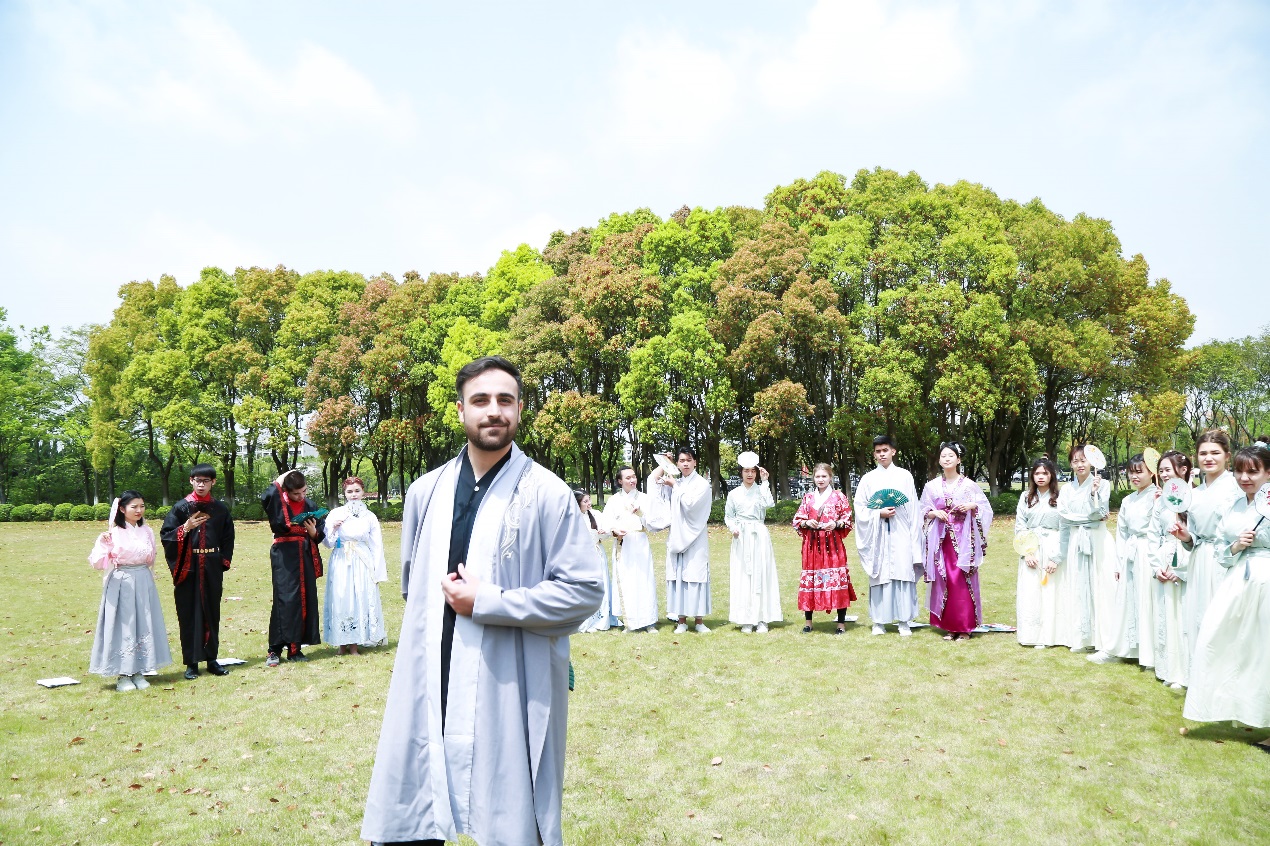 4月15日,上海大学20名国际学生跟随汉语教师和国际学生辅导员,在莺飞草长的春日里,身着传统汉服,品读国学经典,寻找古诗里的春天,共同感受中文的魅力,进行了一场充满乐趣的文化之旅。