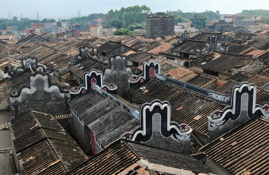 △高要回龙镇赤水塘社区村中碉楼和镬耳屋相映成趣。西江日报全媒体记者 吴勇强 摄米仓巷、草鞋街,骑楼街