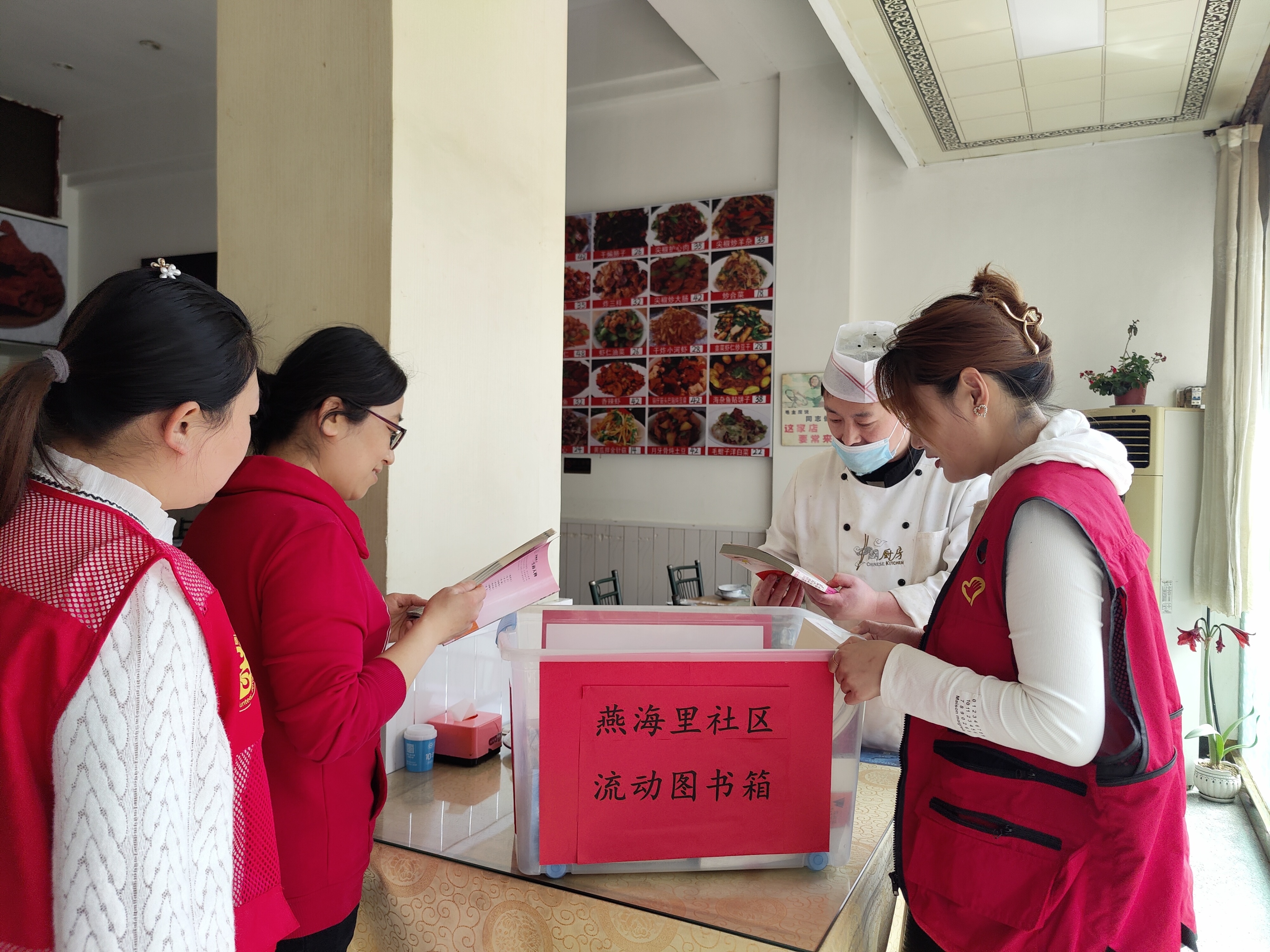 在海港区燕海里社区辖区的一家餐厅内,服务员认真地阅读着社区志愿者送来的书籍。自从社区开展“流动书箱”活动以来,阅读书籍已经成为他们工作之余最大的爱好。