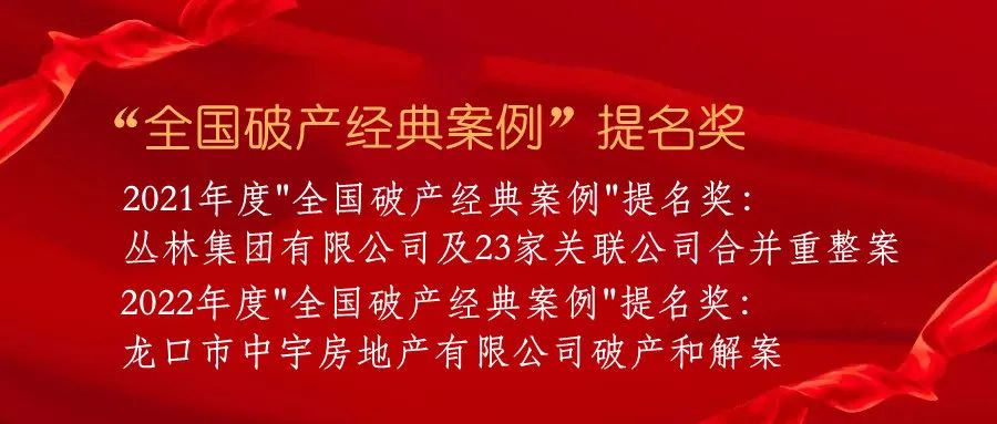经过评选,龙口市中宇房地产有限公司破产和解案获评2022年度“全国破产经典案例"提名奖