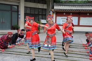 跳竹竿是少数民族群众喜爱的群众体育活动,已有上千年历史。活动现场以竹竿舞开场,各族群众唱歌跳舞,将民族文化以歌舞形式展现。在场的村民群众深受感染,情不自禁地唱起来、跳起来。现场洋溢着欢歌笑语,喜庆而热烈。