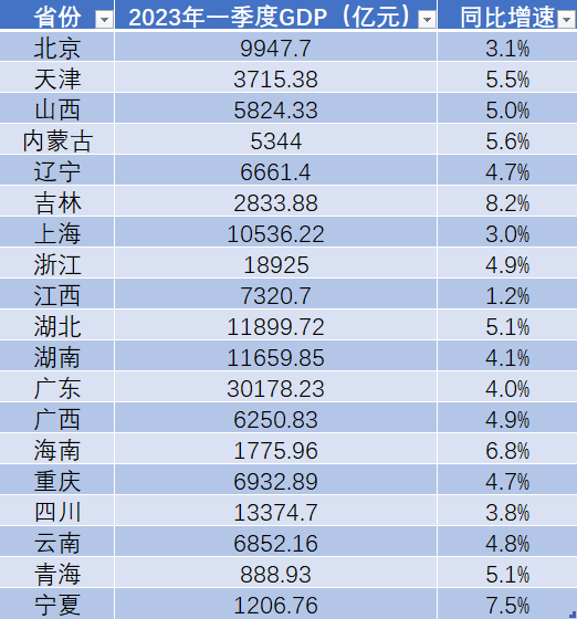 自国家统计局4月18日发布今年一季度主要经济数据以来,各个省份近日陆续发布本地数据。