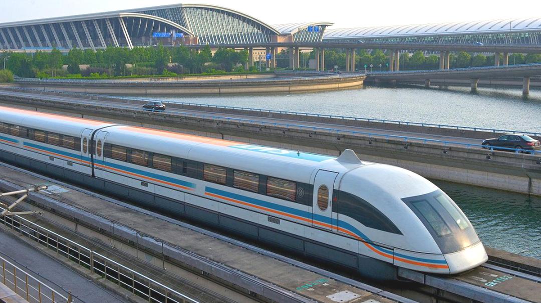 上海磁浮列车示范线西起2号线龙阳路站,东至浦东国际机场,在路线图中的标志色由黃色和绿色组成,是中国首条磁浮线路,最高时速达430公里,到浦东国际机场近30公里的路程,贴地“飞行”,只需7分钟。它也代表着浦东的发展速度。