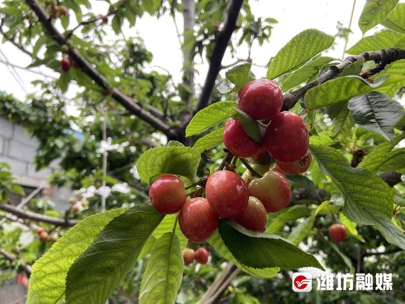 弥河镇赵疃村大棚里的樱桃即将成熟上市。
