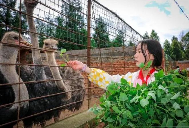 除了田地,校园里还藏着个“动物园”。“动物园”是前些年经当地有关部门审核审批后建立起来的。学生在开阔眼界的同时,也学会了如何与小动物相处。怀抱着一捆捆新鲜的青草,大家簇拥着来到“特种养殖区”。梅花鹿、鸵鸟、鸸鹋、豪猪、珍珠鸡……见到这些动物,同学们异常兴奋,隔着围栏伸长了手投喂。