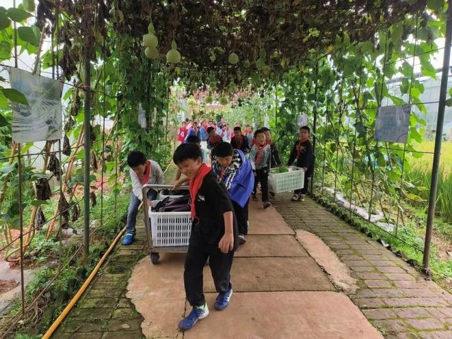 同样,在开设劳动课这件事上,学校也曾受到过不少质疑,“在文化课分数更受重视的背景下,农村孩子上劳动课岂不更耽误学业?”“干农活能学到什么?”雷应飞道出了缘由,作为一个留守儿童占比超70%的寄宿制学校,许多留守儿童父母进城务工,祖父辈留在家中照顾小孩。出现了“长辈下地干农活,孩子在家打游戏”的普遍现象,特别是劳动教育的缺失,让一些孩子连基本的农活、简单的家务都不会做。