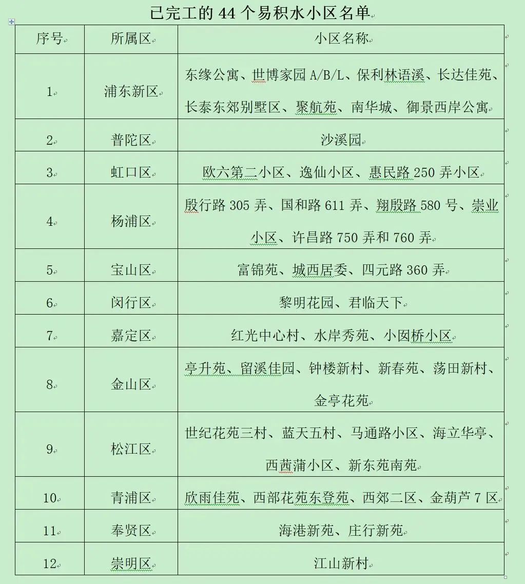 去年民生访谈节目中提到的《上海市易积水居民小区防汛能力提升三年行动计划(2022-2024年)》任务清单中的66个小区,2022年已完成42个小区改造任务,超额完成目标。2023年完成其余24个小区改造任务,实现“三年计划两年完成”。