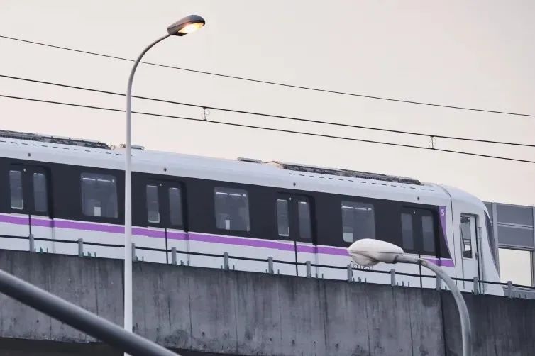 紫红色的5号线是上海第一条真正意义上的轻轨,它是中国第一条采用高架轻轨制式建成试运营的轨道线,也是第一条上海自行生产的轻轨车辆上线运营的轨道线。2018年,5号线南延通车试运营,成为首条从黄浦江上横跨的轨道交通线路,江川路到西渡区间有别样的“江上美景”,吸引了许多乘客的目光。