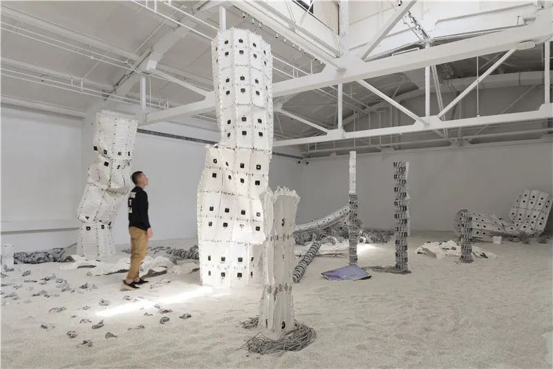 他还谈到,时间贯穿着过去、现在和未来。时间是一个既日常又超验、既具体又抽象的概念。从宇宙大爆炸到太阳系的诞生,从生命的萌芽到人类文明的起源,时间的尺度是浩瀚的、无限的。时间的本质是运动、变化,是人类感知、认识、描述世界万物创造的一个术语。没有人类的时间毫无意义,并不存在。时间无法脱离空间和物质单独存在,传统时间被呈现为连续、不间断的形态。重美术馆也是一座在历史建筑上重获新生的新美术馆,其自身即涵盖着对既往的重构与再造。沧海桑田,历久弥新,时空在此回响。“时间的海”,也正是在向重美术馆这座焕发新机的工业建筑致敬。