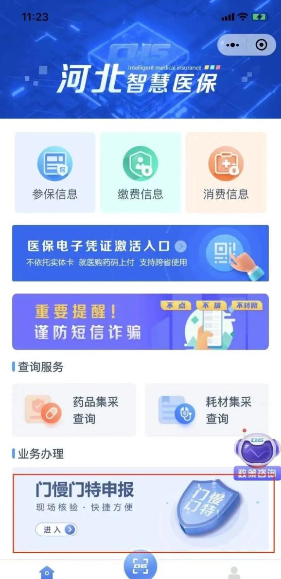 从2022年4月1日开始,门诊慢特病申报更换登陆程序,由原来的程序更换为河北智慧医保微信小程序中的“门诊慢特病申报”。