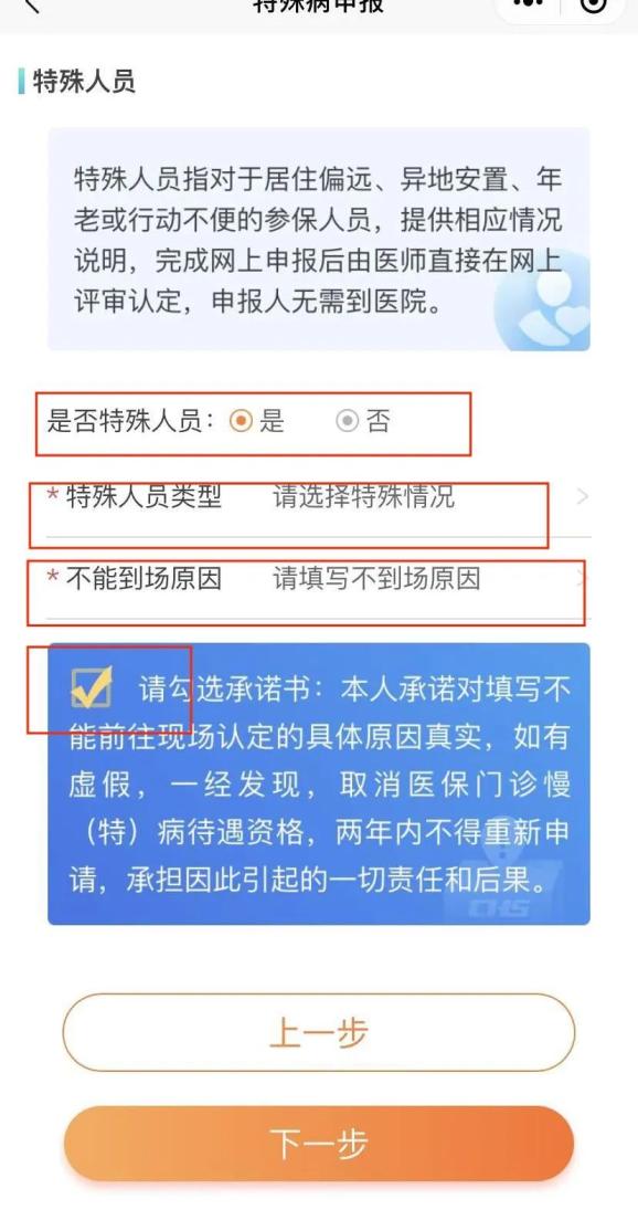 七、选择“是”特殊人群,选择类型原因,勾选承诺书