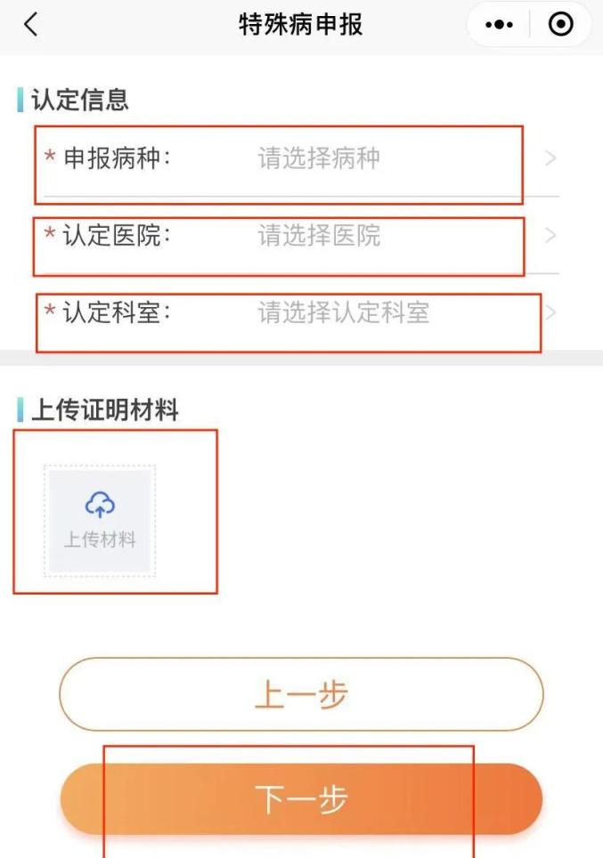 八、选择病种、医院科室,并上传申报所需材料,点击下一步完成申报。