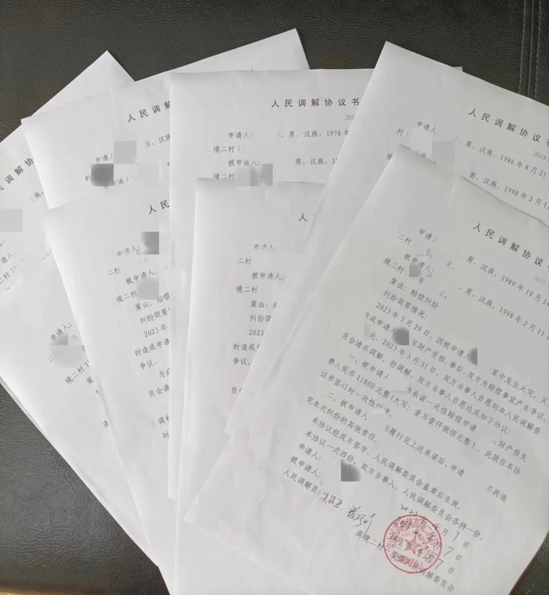 由于过火涉及8户居民不同程度受损,调解员根据司法所指导,开展“背靠背”逐个化解。其中,501室业主在初步达成协议后,因了解到其他住户拿到的赔偿比自己多,导致了前期调解努力前功尽弃。为了避免类似情况发生,司法所一方面做好赔偿数额差异的解释工作,另一方面实行调解协议快出快审、随出随审,尽快固定达成的调解事项,推动矛盾纠纷化解驶上“快车道”。
