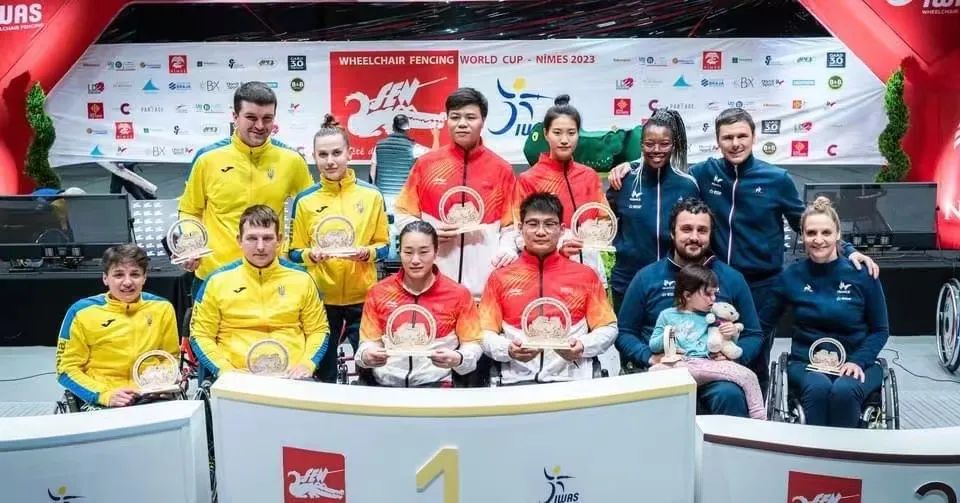 第一排左四为冯彦可4月20日至23日,2023年法国尼姆轮椅击剑世界杯赛在法国尼姆进行,中国轮椅击剑队选手冯彦可在比赛中发挥出色,相继斩获了男子B级花剑个人冠军、男子B级佩剑个人亚军、佩剑公开团体冠军。冯彦可于1988年出生在邳州市,幼年因故造成下肢重度残疾。2003年,冯彦可开始接受轮椅乒乓球项目训练,并顺利入选江苏省残疾人乒乓球队。2011年冬,冯彦可转入江苏省轮椅击剑队训练。在2018年雅加达亚残运会上,冯彦可获得男子佩剑个人金牌,花剑个人铜牌,花剑团体金牌,重剑团体金牌,佩剑团体金牌。在2021年东京残奥会上,冯彦可获得轮椅击剑男子佩剑个人B级金牌、男子花剑个人B级金牌。