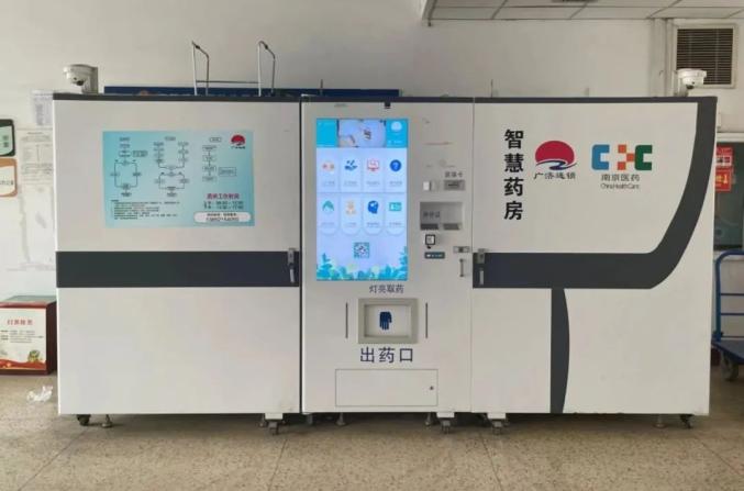 徐州医科大学附属医院本部4号楼一层智能药柜,又叫无人售药机,其主要功能除了24小时无人售药以外,在诊疗机构场景内,可以实现OTC药品及普通处方药的无接触售卖。