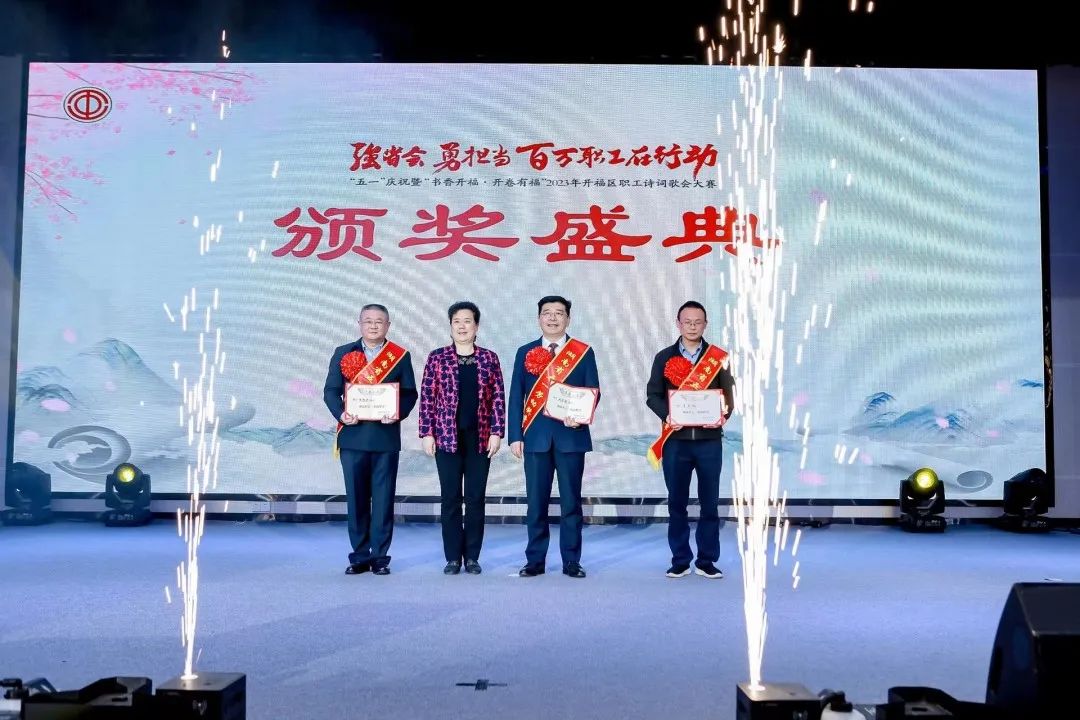 开福区委书记罗玉环亲切慰问劳模代表。作为“书香开福·开卷有福”全民读经典系列活动之一,本次诗词歌会大赛吸引了全区各基层工会组织和职工的踊跃参与。经过层层选拔,来自全区各基层工会的15支队伍参与决赛,比赛节目以展示劳动者风采和廉政文化为主题,涵盖诗词歌赋经典诵读和情景剧表演。最终,由中共长沙市开福区委宣传部参演的节目《沁园春·长沙》获得特等奖,开福区清水塘第二小学参演的节目《汨罗江上的呐喊》、中共长沙市开福区委办公室参演的节目《颂莲》获得一等奖。