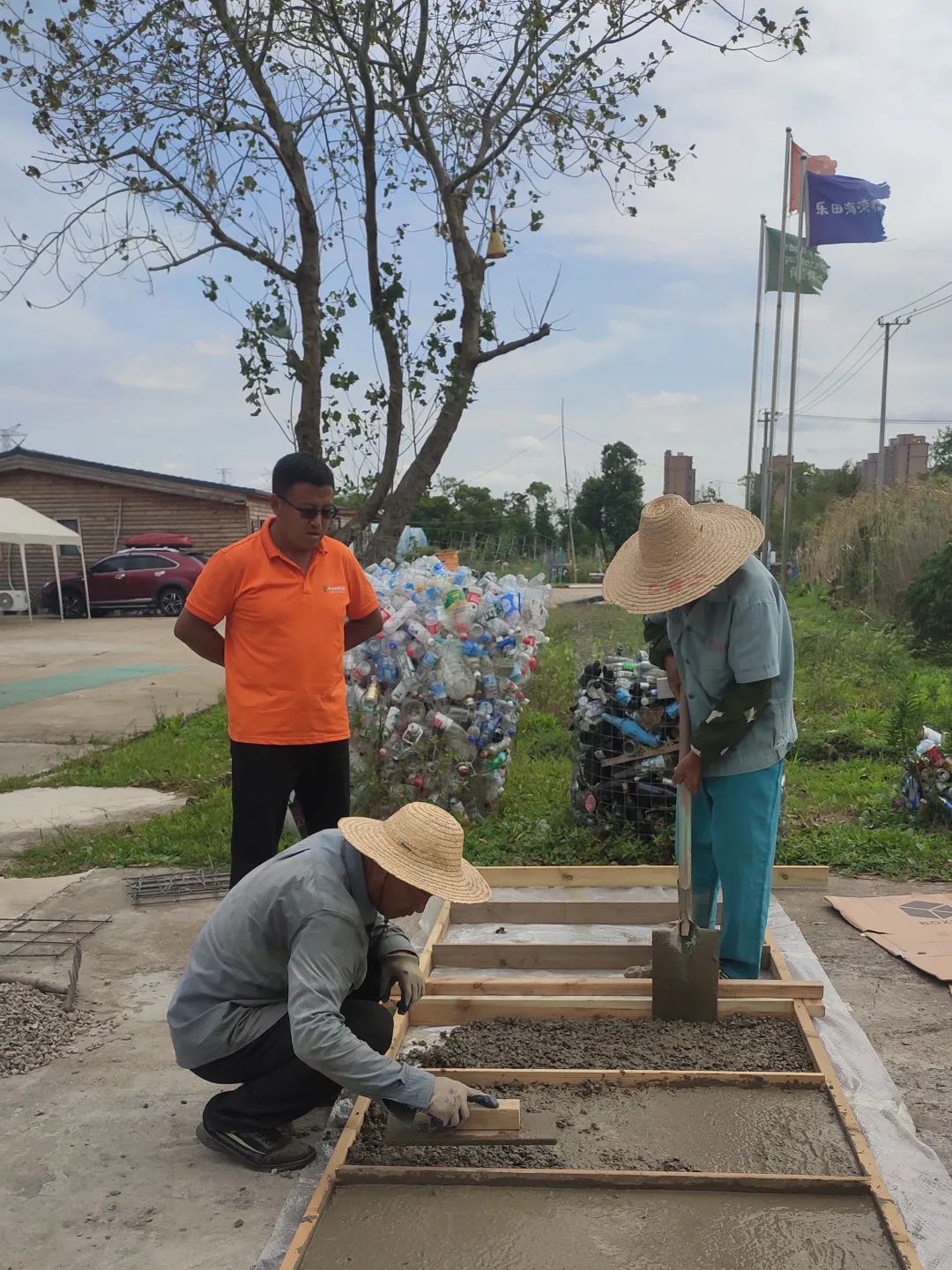 塑料瓶、易拉罐和玻璃瓶等材料,农场也专门安排了区域回收,塑料瓶可以做成供人们休息的石笼椅,玻璃瓶经过清洗,去掉标签纸,被用来丙烯彩绘,做成各种形状的装饰品,或者放进面包窑里作为保温的好材料。