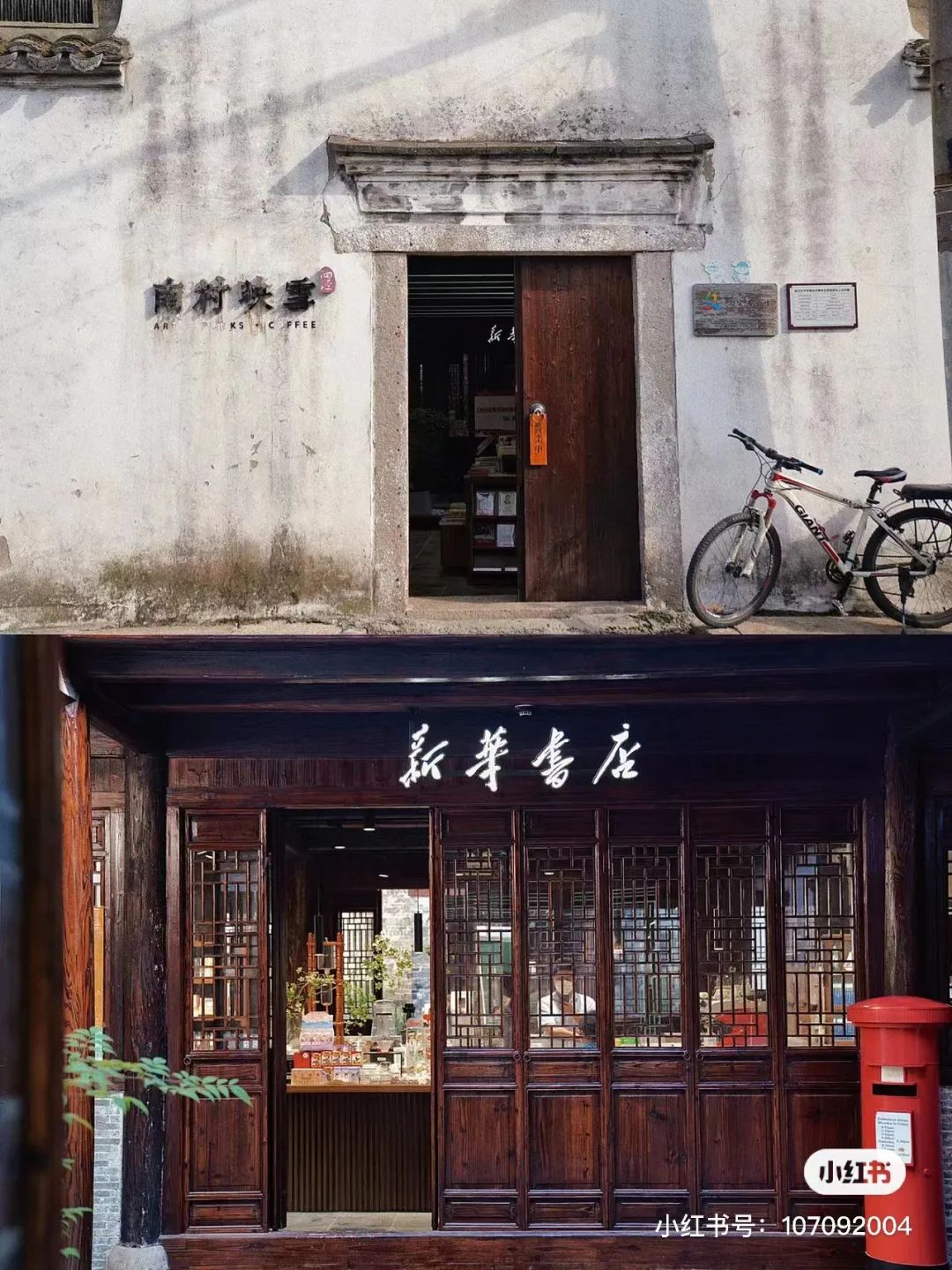 店招在斑驳的白墙上,透着一丝雅趣,它也是松江最美的书店之一。