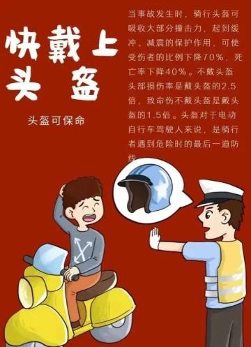 摩托车、电动自行车因为其结构特殊,发生事故时,车身容易失去平衡,骑乘人员极易被甩出,而头部往往会先着地,或者撞击到车辆及其他物体。交警部门表示,数据显示,当事故发生时,头盔可吸收大部分撞击力,起到缓冲、减震的保护作用,可使受伤者的比例下降70%,死亡率下降40%;不戴头盔头部损伤率是戴头盔的2.5倍,致命伤不戴头盔是戴头盔的1.5倍。对于摩托车、电动车驾驶者来说,头盔是骑行者遇到危险时的最后一道防线。