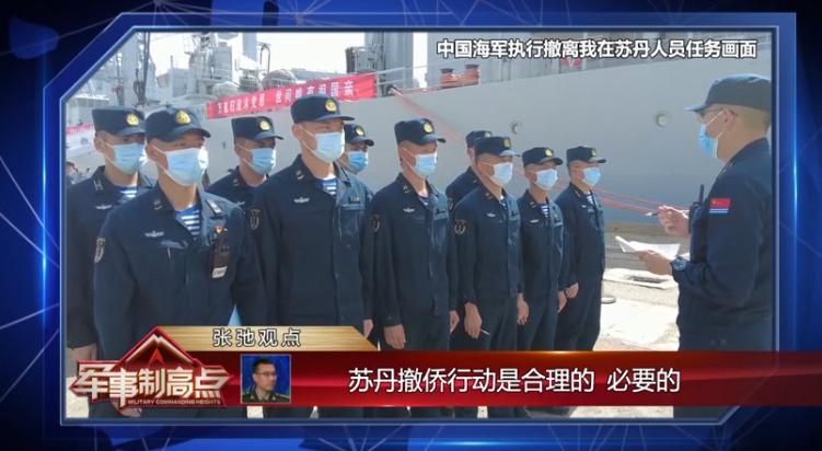 苏丹撤侨行动是合理的 必要的第一,这次行动它是合理的、必要的。我们常常说海外利益的安全是我们总体国家安全的重要组成部分,所以维护海外利益安全是任何国家和军队的使命和任务。中国军队当然也不例外。所以这一次,保护我们在海外公民的生命财产安全是中国军队义不容辞的责任。