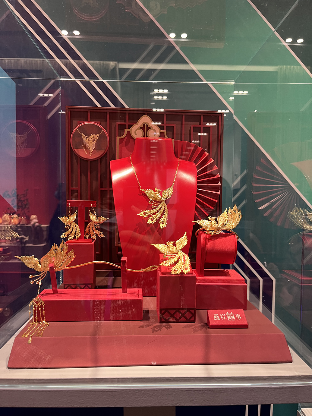 老字号消费场景,冠生园蓄能压缩饼干做成了白象电池形状,大白兔和蔻驰联名时尚手提包,老凤祥一套3D打印黄金,市价10万元。