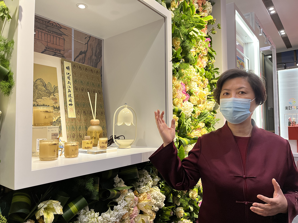 今年“五五购物节”开幕式现场,一个小型“消费新场景”展吸引嘉宾纷纷驻足。