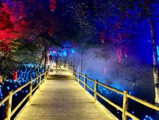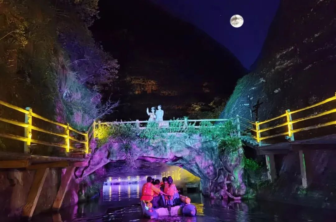 夜游九龙潭是福建省首家“行浸式”水上峡谷夜游景区,景区内运用现代科技,在原生态的基础上因地制宜,将自然的山体、丛林、水底与现代的声光电完美结合,打造“丛林穿越”“仙境奇峡”“光影奇秀”三大特色景观,再融入状元文化与龙文化等元素,让游客真切的感受“白天观山水,晚上赏光影”的独特魅力。