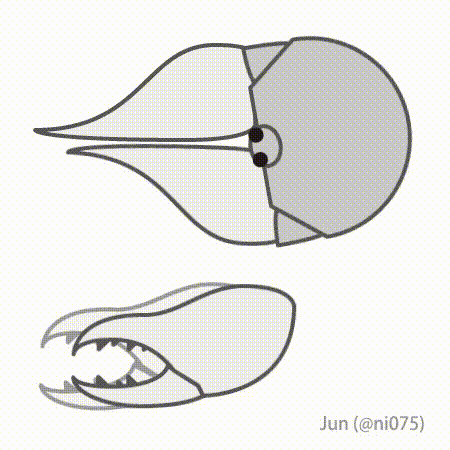避日蛛的螯肢(颚,类比于嘴巴)的运动,黑色是眼点(图片来源:wikipedia)避日蛛大部分没有毒,行走江湖主要靠蛮力。它们的螯肢,或者说颚特别大,占它们身体的三分之一长,还贼啦有力,在蛛形纲家族里是一霸。避日蛛有八条腿,不过它们的“大嘴巴”让它们看起来有10条腿,因此才会特别有威慑力。