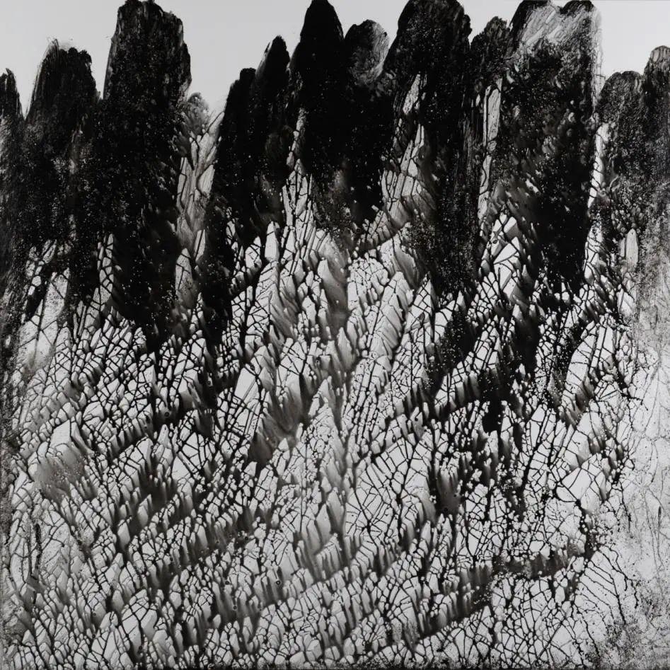 本次着重展出的综合材料作品是潘鲁生取材于传统瓷板画的灵感基础之上,大胆创新采用铝塑板为媒介,板材的特性与丙烯相结合,形成的肌理具有了水墨的意象,是用西方技法挥洒东方水墨语言创作的一系列作品,空茫浩渺,意态横生,是化繁为简的意境意象制作。