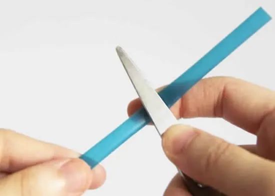 塑料花翻到背面,保留一端的吸管,用剪刀将另一端多余的部分剪去。