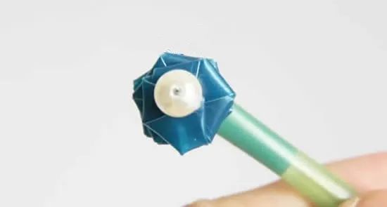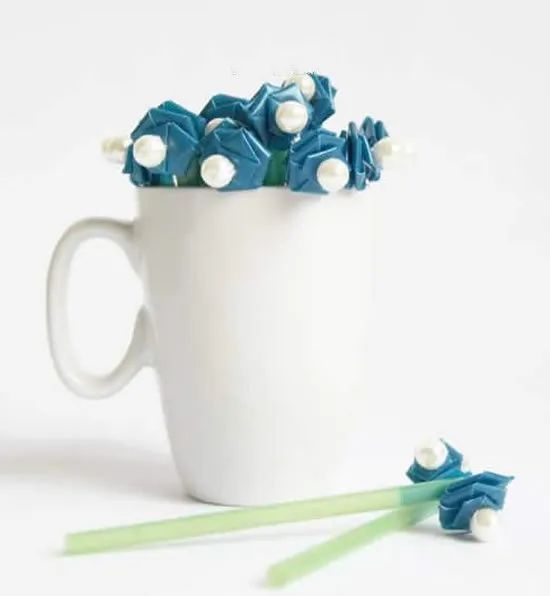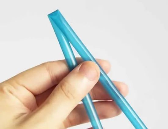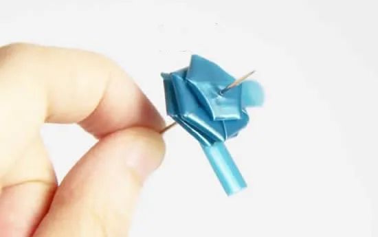 将保留下来的一端插入另一个吸管,一枝花就做好了。