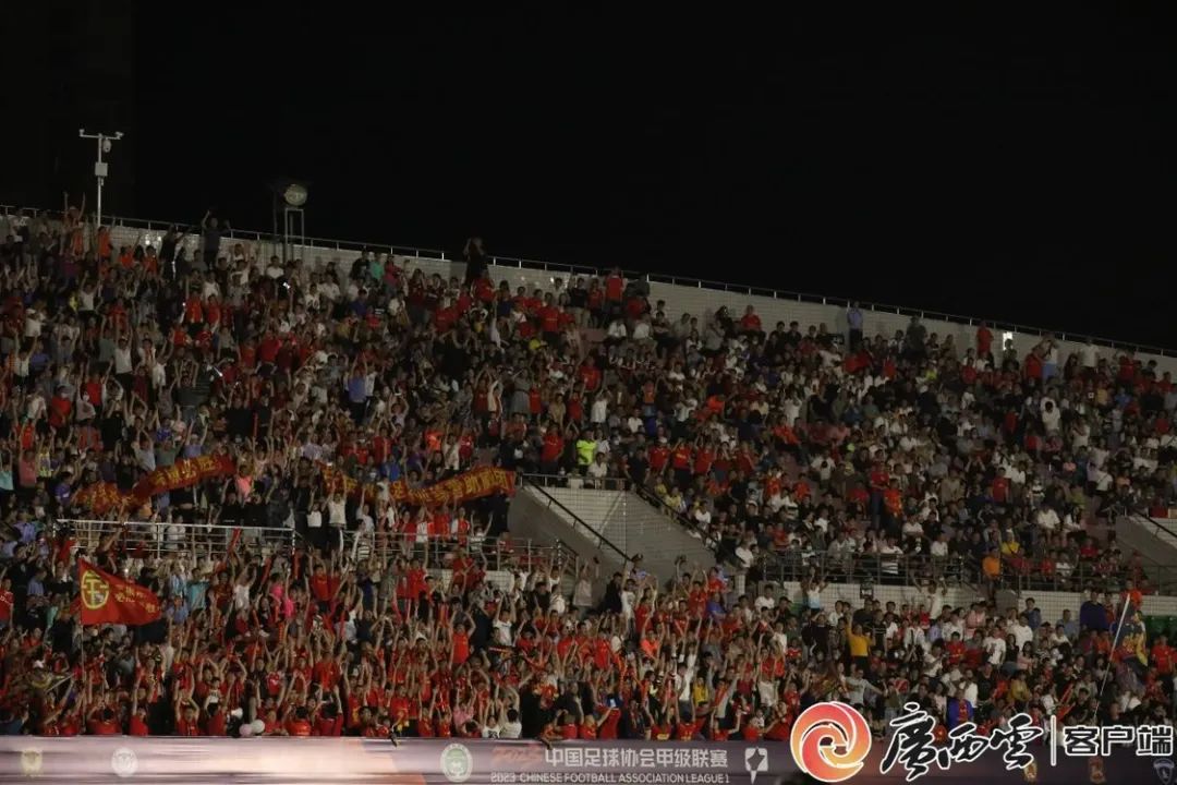 现场热情的球迷。黄源彬 摄上赛季,平果哈嘹队首次参加中甲联赛获得第11名。今年俱乐部加大引援力度,引进了包括前国脚赵旭日、邹正,外援杰里奇等20名球员,向着更好的成绩发起冲击。据悉,2023赛季中甲联赛于4月22日—11月5日举行,今年恢复主客场赛制,根据赛程安排,平果哈嘹足球队在主场共进行15场比赛。