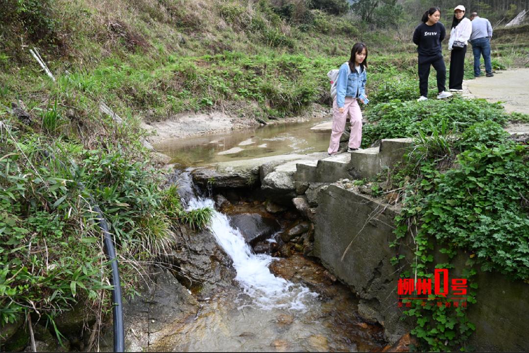 图为记者在寻江源头金紫山脚下的小溪流探访。当时已是下午3点,我们在村口发现一条流水淙淙的小溪,清澈见底。李传宝说,这条小溪就发源于村后的金紫山,从这里流出的水,会汇流到五排河,再流往融江。小溪的岸边长着一棵年岁颇大的树木,另外一侧的山上,则是成片的竹林。从村口向里看去,群山中房屋错落,不远处还有杜鹃花还在盛放,宛若《桃花源记》中“阡陌交通,鸡犬相闻”的场景。