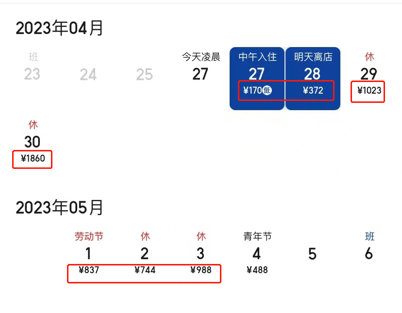 他发现一些平日里性价比较高的酒店,五一期间的价格直线上涨,平时200元左右的房间,这个五一价格飙升至800多元一天,并且已经满房。而这已经成为普遍现象,当地各大酒店、民宿五一期间的涨幅均在两倍以上,有的涨幅会达到三四倍。